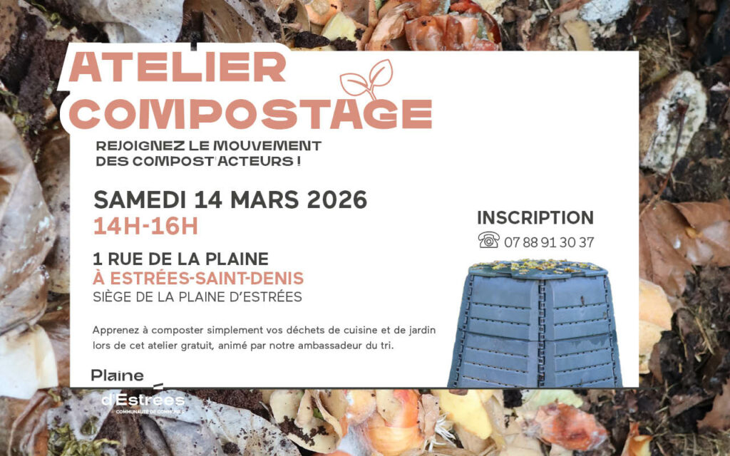 Inscription obligatoire par téléphone au 07 88 91 30 37 ou sur : https://www.ccplaine-estrees.com/evenement/les-ateliers-compostages/ Ne tardez pas, les places sont limitées !